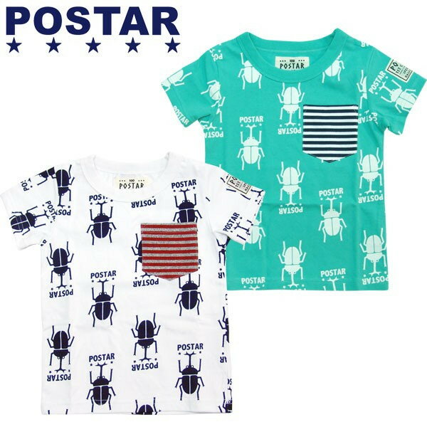 【ブランド:POSTAR】 【キッズ プリントTシャツ】 カブトムシの総柄がインパクト大! キッズらしいアクティブな雰囲気のプリントTシャツ 着心地がよく肌にも優しい綿100%しっかり素材◎ ※※80,90,95cmは左肩スナップボタン付きです。